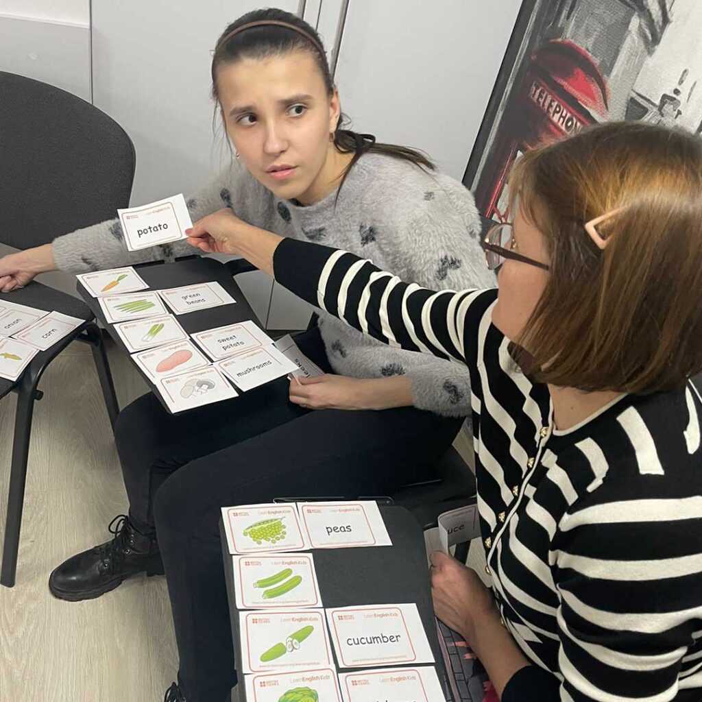 Grupele sunt mici și interactive, profesorii au experiență cu copii timizi și folosesc metode ludice (jocuri, cântece, role-play) pentru a-l face să prindă încredere și să participe cu plăcere.